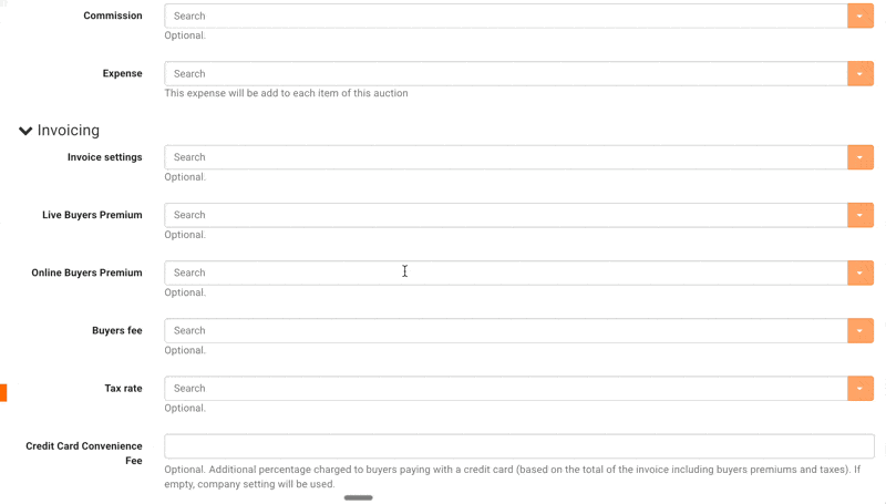 After saving your customized Invoice Settings, they must be assigned to the specific auction.