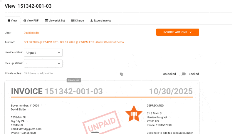 Please keep in mind that for this feature to work, the unclaimed bidder will only be able to open and access their invoice with the link provided in the email. For security purposes, this link will expire after 30 days.