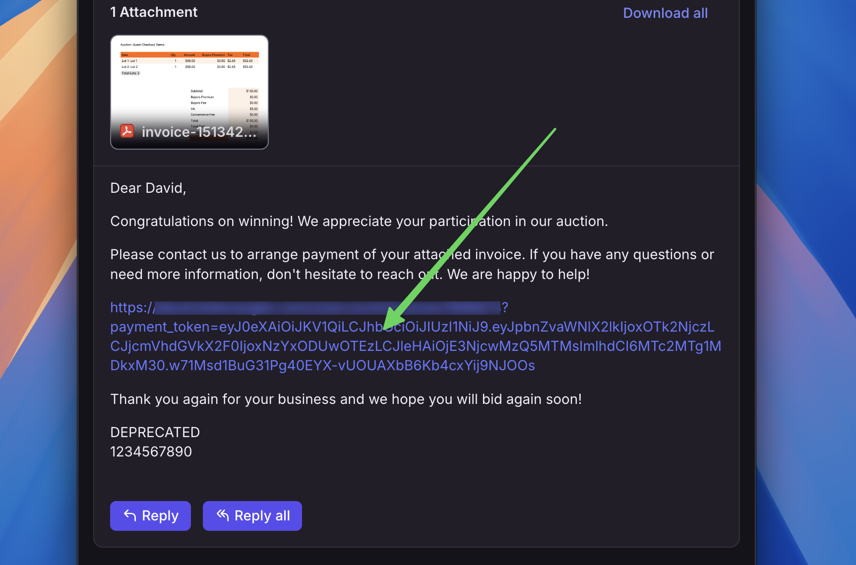 Unclaimed bidders who click on the link will open the invoice in their default browser.