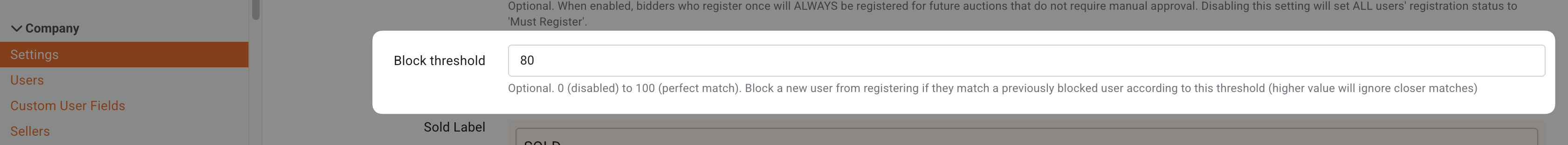 Block Threshold is a fraud-prevention feature that helps stop previously blocked bidders from creating new accounts using slightly altered information (such as a new email address).
