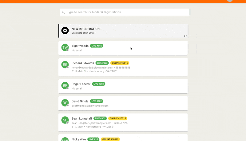 This feature is available within the Live Registrations screen, one of the features exclusive to our suite of live tools. If you do not have this feature and are interested in having these enabled for your company, please reach out to helpdesk@bidwrangler.com for Live Tools Training.